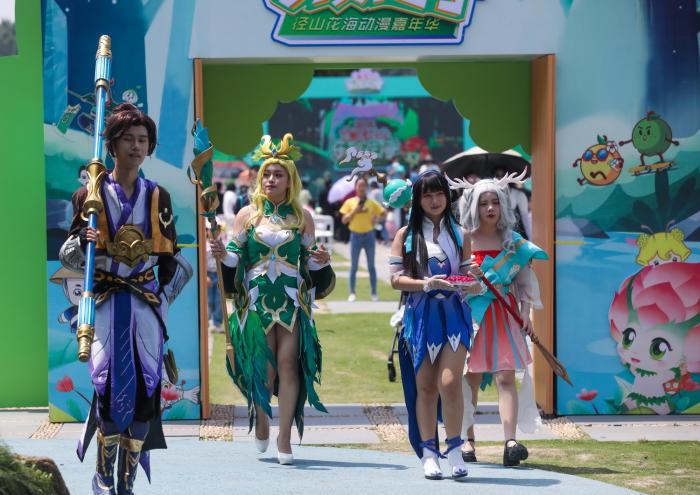 5月2日,径山花海景区内上演的动漫大巡游。