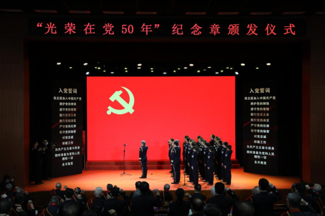 6月24日,国家安全部举行“光荣在党50年”纪念章颁发仪式,国家安全部党委书记、部长陈文清和部党委委员为老党员代表颁发纪念章。