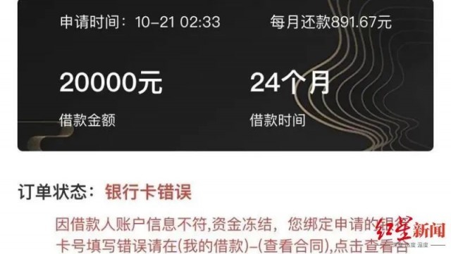 据民警介绍,近日,泸州市民孔某在手机APP上申请了一笔20000元的网络贷款业务,但订单状态显示借款人账号信息与银行卡不符,贷款资金被冻结。