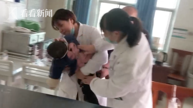 在医护人员的抢救下,没过一会儿,孩子哇的一声哭了出来,卡住的萝卜也吐了出来。孩子成功获救。
