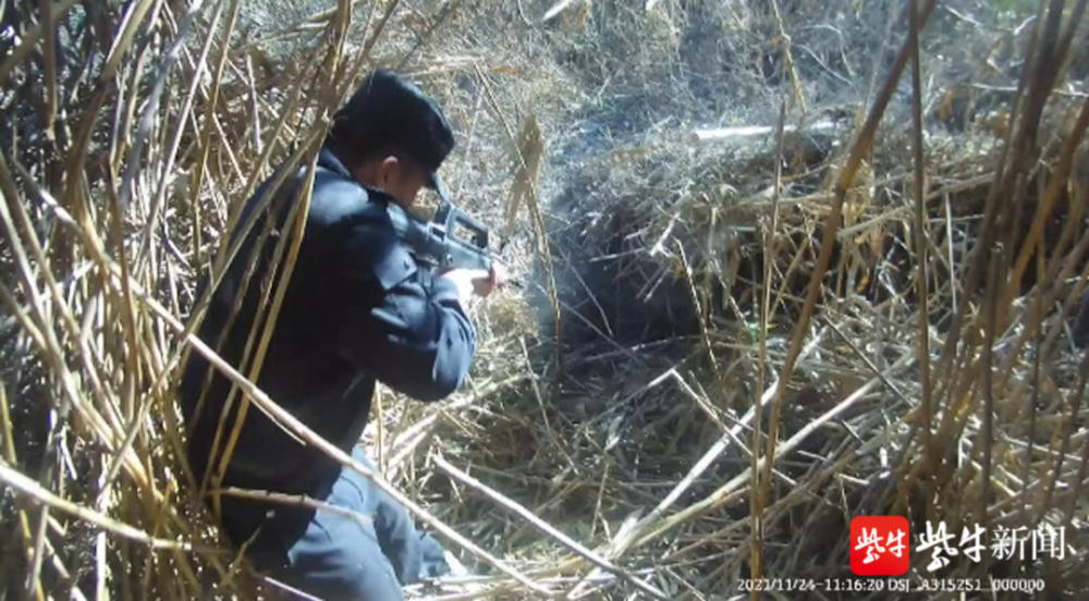 随后,追堵野猪的民警也赶到了现场,由于该公司院内面积近30亩地,面积较大,杂草茂密,野猪体毛与杂草颜色相近,并且坑洞、粗水管较多,一时间难以寻到野猪踪迹。民警便拿好盾牌和钢叉等护具,分组展开搜寻。经过两个多小时的搜寻,最终民警在干涸的水塘边发现了踪迹,考虑到野猪具有攻击性,并且已经对市民造成了人身伤害,民警便决定现场将其击毙。