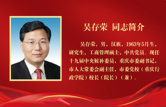 2017年3月,吴存荣跨省赴重庆,后任重庆市委常委、副市长,2021年1月晋升为重庆市委副书记。