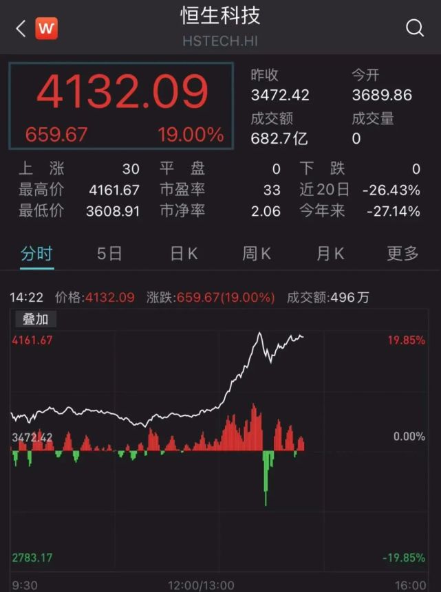 腾讯控股、阿里巴巴均涨超20%,美团、京东集团、快手均涨超28%。A股市场也开始大幅拉升。