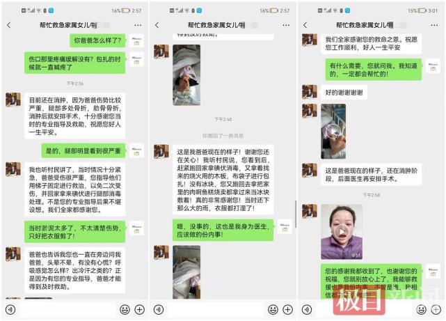 接到牛女士的电话,张彩蝶也很感动。她也问候了一下患者的情况,牛女士告诉她,父亲腿部多处骨折、肋骨骨折,消肿后会在当地医院继续进行手术治疗。