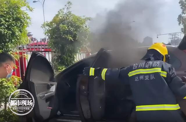3点13分,消防救援人员赶到现场,发现车辆没有明火,但仍有大量浓烟,前挡风玻璃中间部位已经破裂。消防救援人员立即对周围进行警戒并准备破拆玻璃进行处置,但车主通过电话告知消防救援人员他即将到达现场,要求不要破拆。15时18分,车主到达现场,消防救援人员立即打开车门及后备箱排除危险,车内中控台部位烧损严重,其他部位没有过火痕迹。