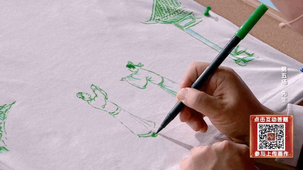 第三点,“画中有诗”的环节,先是画出来一个前传,带动网友参与进来一同创作。每期开始前,我会先画一个局部的元素,比方说一片竹林、一匹马、一盏灯……然后由这个局部的元素延伸开去,展示一幅诗情画意。就是希望能够在荧屏上下带动大家一起参与,同步推进。荧屏上面在画,荧屏下面也在画,能够把观众和节目建立更加紧密的联系。