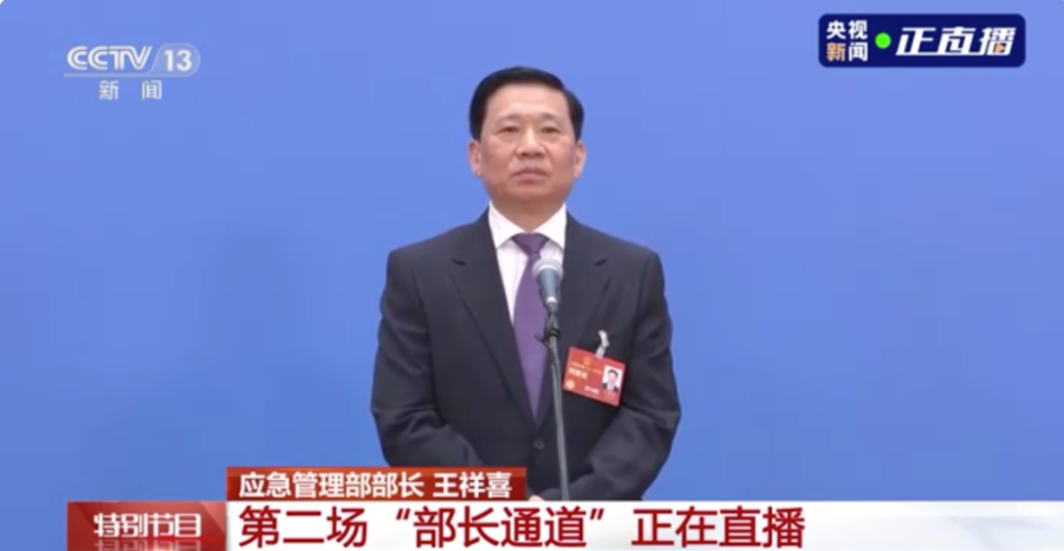 3月7日,全国两会首场“部长通道”在人民大会堂新闻发布厅举行。应急管理部党组书记、部长王祥喜走上通道。