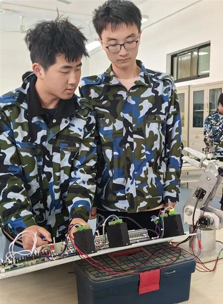 学校率先采用“机械臂”作为教学载体,将训练作品从单一零件变成了更加系统、集成,更加精益求精的跨学科实践作品,学生们需要从无到有,在教学实践过程中,完成其中17个零件的加工,再完成整个机械臂装配、线路调试等,以此来加强对学生工程实践能力的培养。