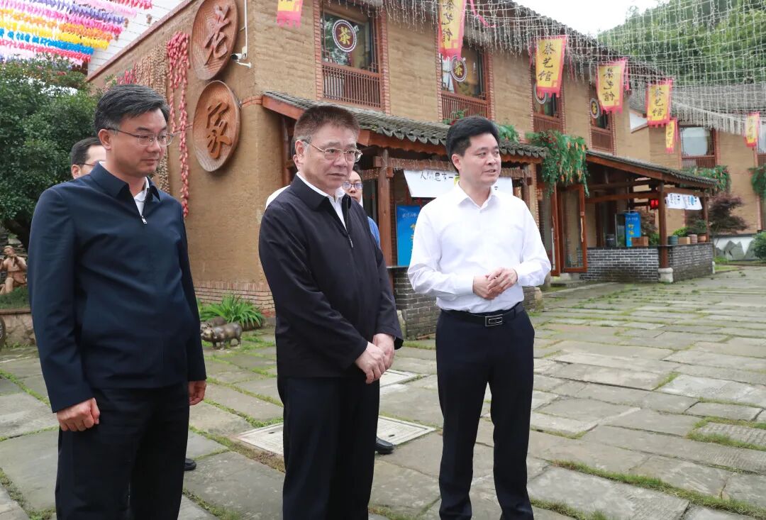 在竹溪县夯土小镇,王蒙徽听取竹溪县推动文旅融合发展情况介绍,询问夯土小镇旅游接待情况,察看生漆工艺和产品,强调要结合实际发展乡村旅游和休闲农业,推动农文旅融合,不断拓宽农民增收致富渠道。
