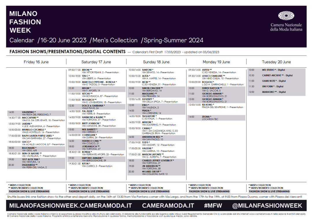 本季米兰男装周的开幕大秀品牌来自意大利奢侈品牌 Valentino,实体秀的压轴品牌为意大利奢侈男装品牌 Zegna。