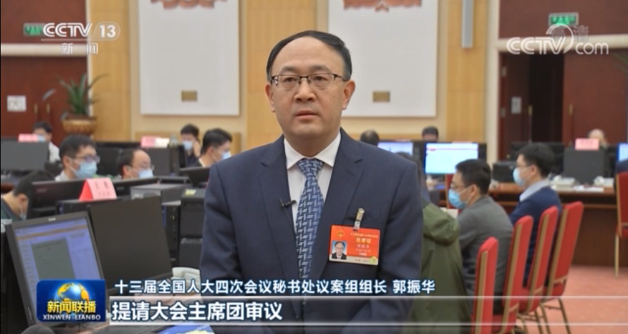 2021年两会期间,郭振华以“大会秘书处议案组组长”的身份出镜。