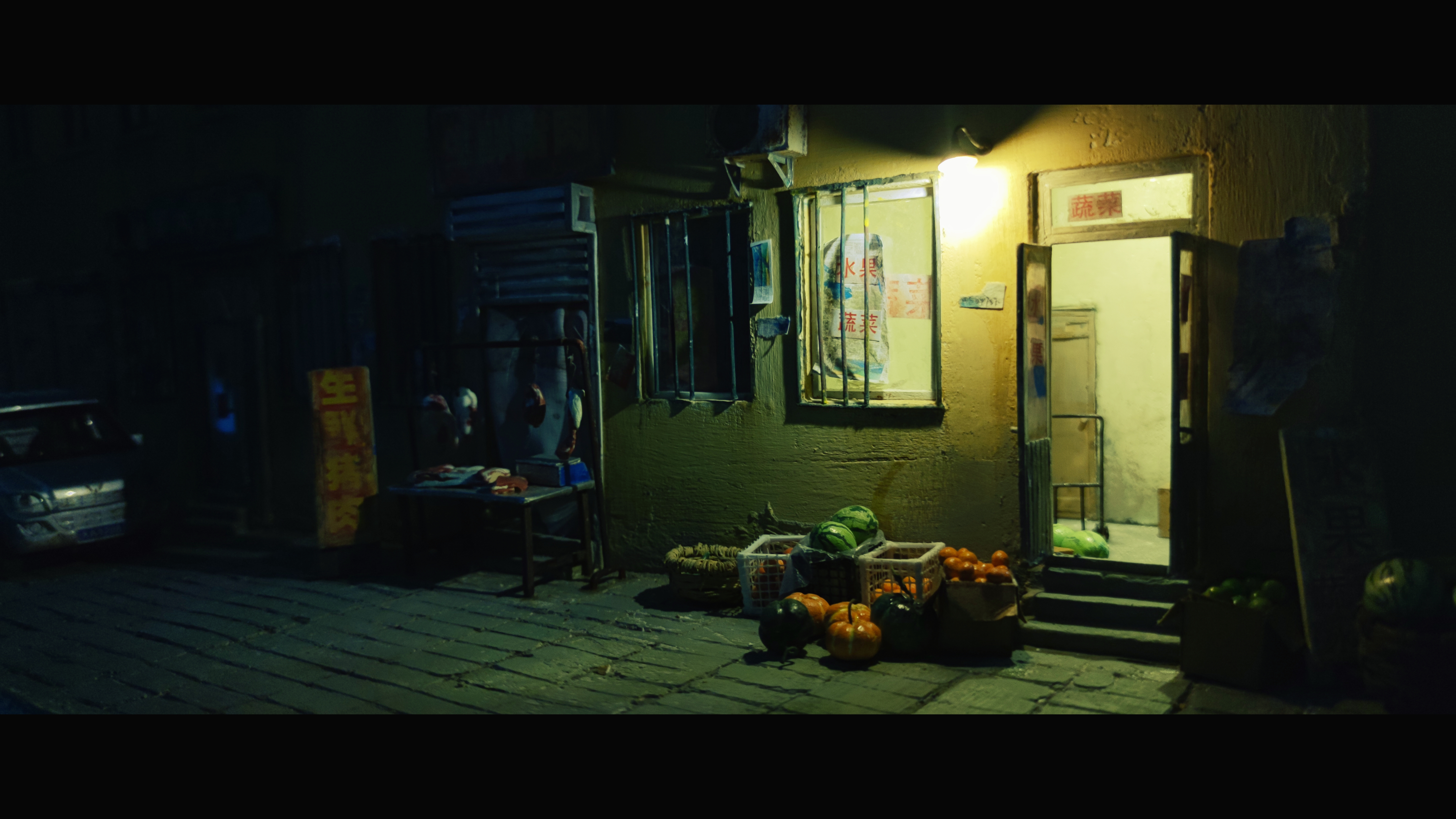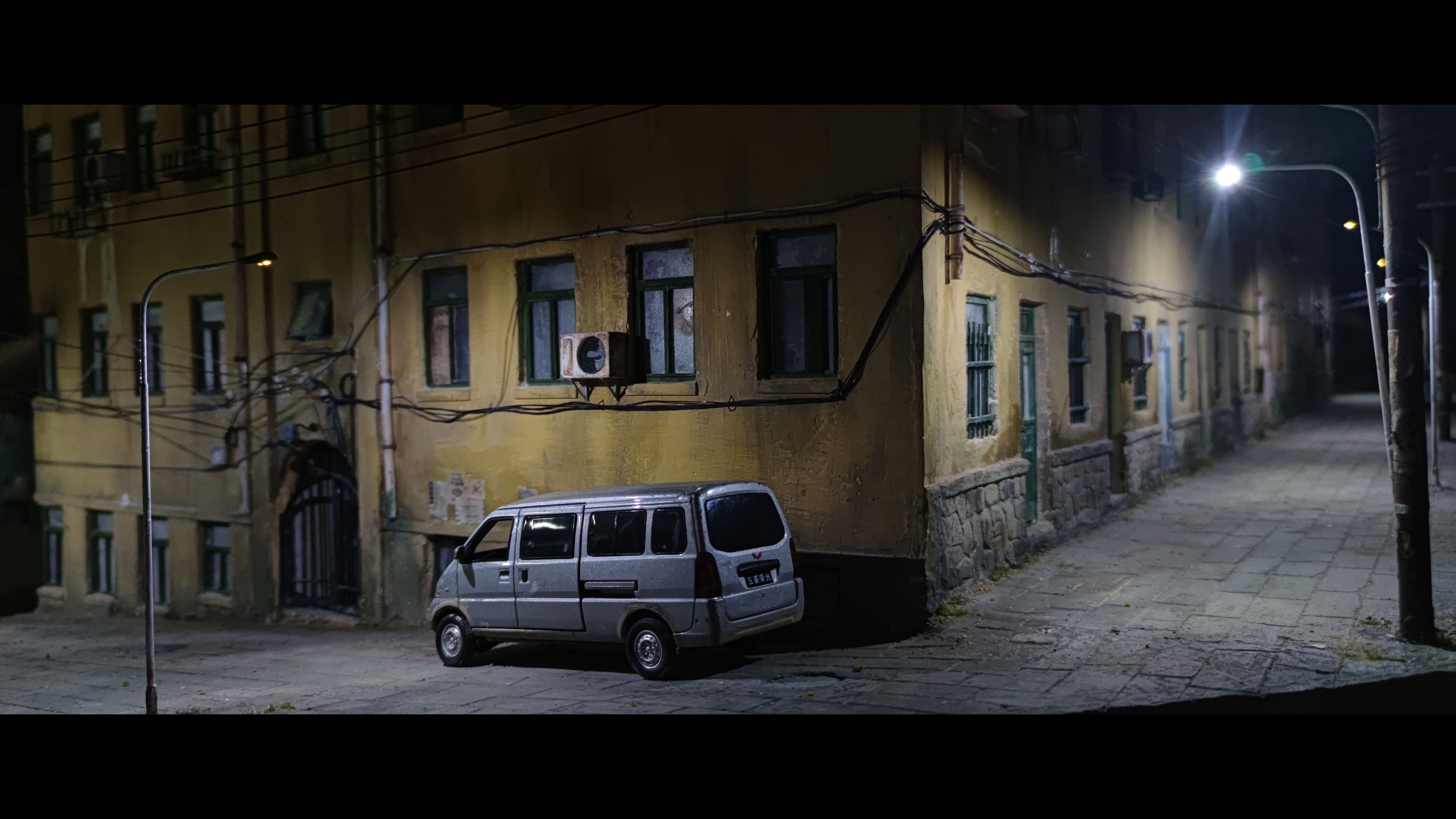 作品中还有一个细节,破旧屋子中的饮水机,这个饮水机看上去比较新,放在陈旧的桌椅板凳旁边略显突兀。杨刚解释道,“我们经过考证,在千禧年国内部分家庭确实拥有饮水机了,这个饮水机放进去确实和整体家居不协调,但我觉得能让场景更加真实。”在视频弹幕中,这个饮水机被网友们称为“点睛之笔”,“我老家也有一个这样突兀的饮水机,只是觉得很怀念”、“我甚至觉得这个饮水机很灵魂”,除此之外,楼宇间拉着的晾衣线、直立的拖把、外墙上的“拆”字、甚至楼下肉铺、水果摊都有被还原出来,更绝的是这件作品都通了电路,夜幕下昏暗路灯、窗户中透露出灯光,让这件作品显得额外治愈。有网友评论道,“作品中看不到一个人,却处处充满烟火气息。”