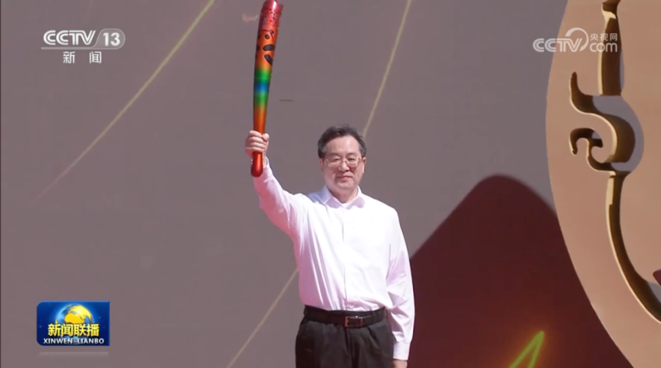 中共中央政治局常委、国务院副总理丁薛祥出席仪式,点燃成都大运会火炬,并宣布火炬传递开始。