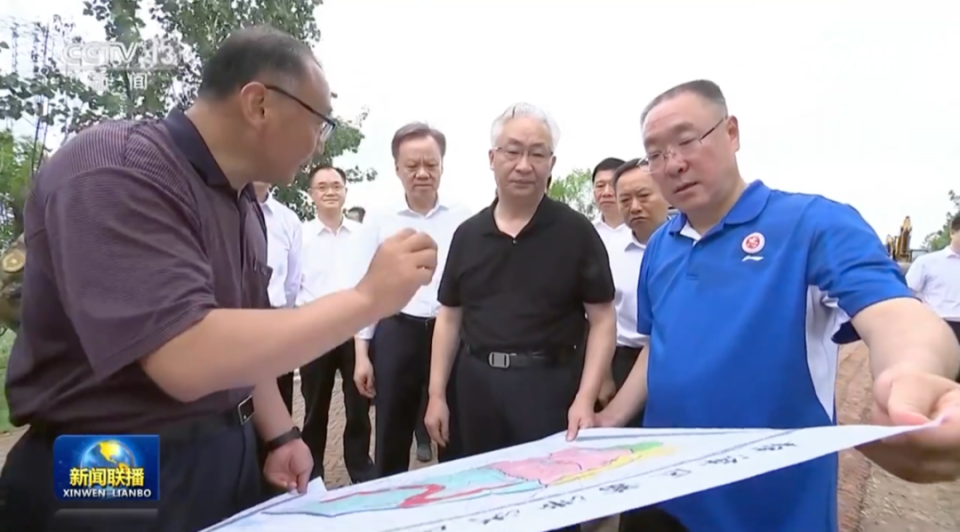 据当地媒体报道,张工徒步登上堤坝,察看来水水势和工程加固情况,了解险情堤段施工进度。