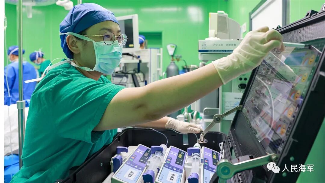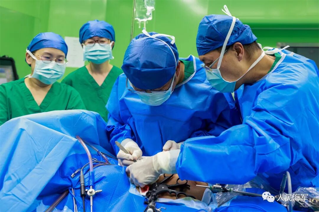 麻醉、铺单、切皮……因乐丽可腹部有剖宫产、脐疝修补术后疤痕,军地医疗专家改变传统进腹次序,从剑突下进腹展开手术,运用电勾精细解剖,分离腹腔网膜及肠管与肝门部结构黏连后,离断胆囊动脉、胆囊管,将胆囊一点点剥离……手术期间,患者血压突然升高,海上医院麻醉医生纪瑞华临危不乱,在援瓦医疗队麻醉医生刘文涛的协助下,通过麻醉机器人,综合采取多种降压方法,使患者血压逐渐恢复正常。26分钟后,手术取得圆满成功。