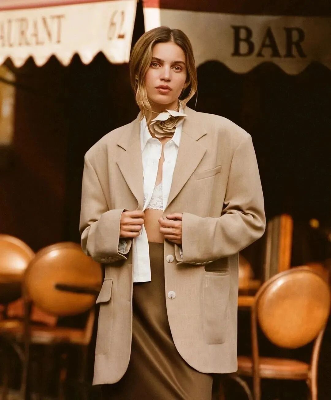 另外,还有麂皮,自带做旧质感,光泽暗哑低调,博主Camille Charriere穿着的麂皮套装,流畅的剪裁透露着不菲的价格,很有老钱的腔调。