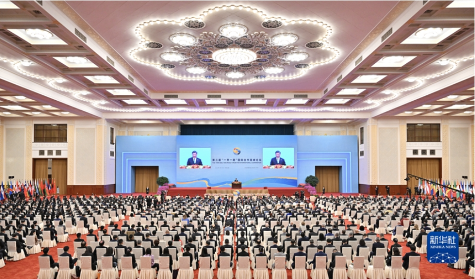 10月18日,国家主席习近平在北京人民大会堂出席了第三届“一带一路”国际合作高峰论坛开幕式并发表题为《建设开放包容、互联互通、共同发展的世界》的主旨演讲。