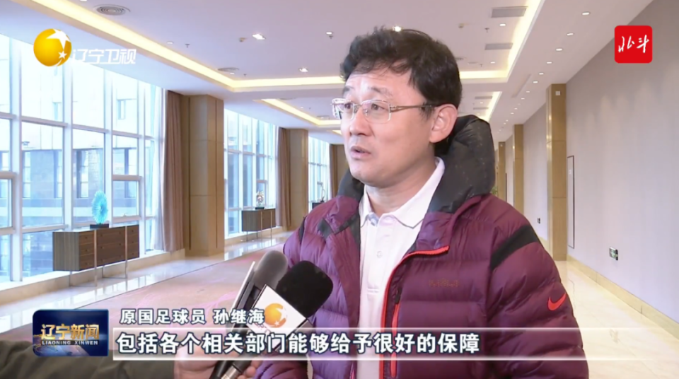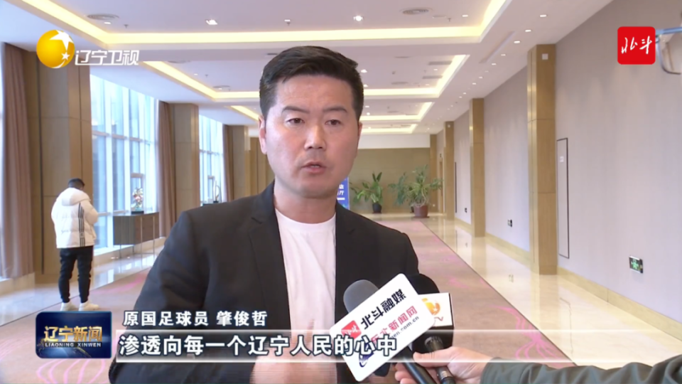 辽宁卫视电视画面显示,原国足运动员孙继海、肇俊哲出镜接受记者采访。