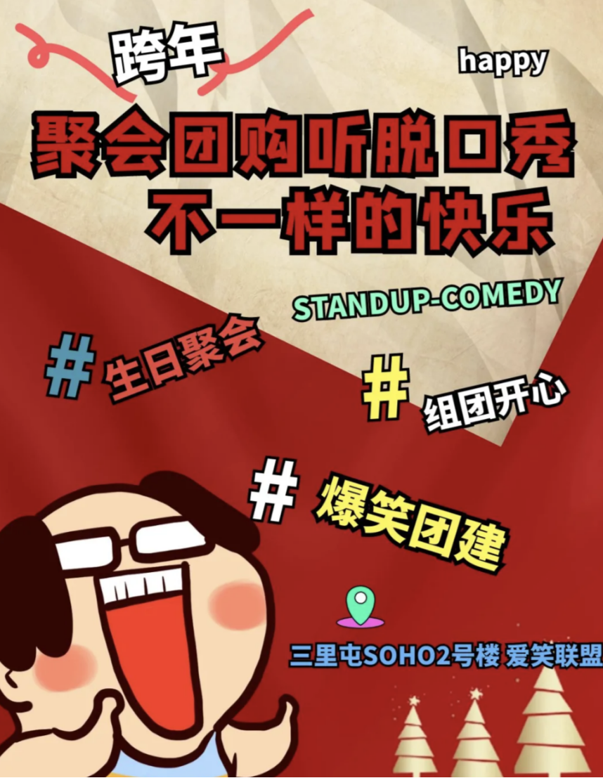 如果不想去人挤人的网红打卡地,约上三五好友一起去听一场轻松幽默的跨年脱口秀也是个非常不错的选择。爱笑联盟作为北京老牌的脱口秀团体,拥有超过90名脱口秀演员以及超高品质灯光、音响、舞美、大屏,保证各位可以度过一个开怀大笑的夜晚~