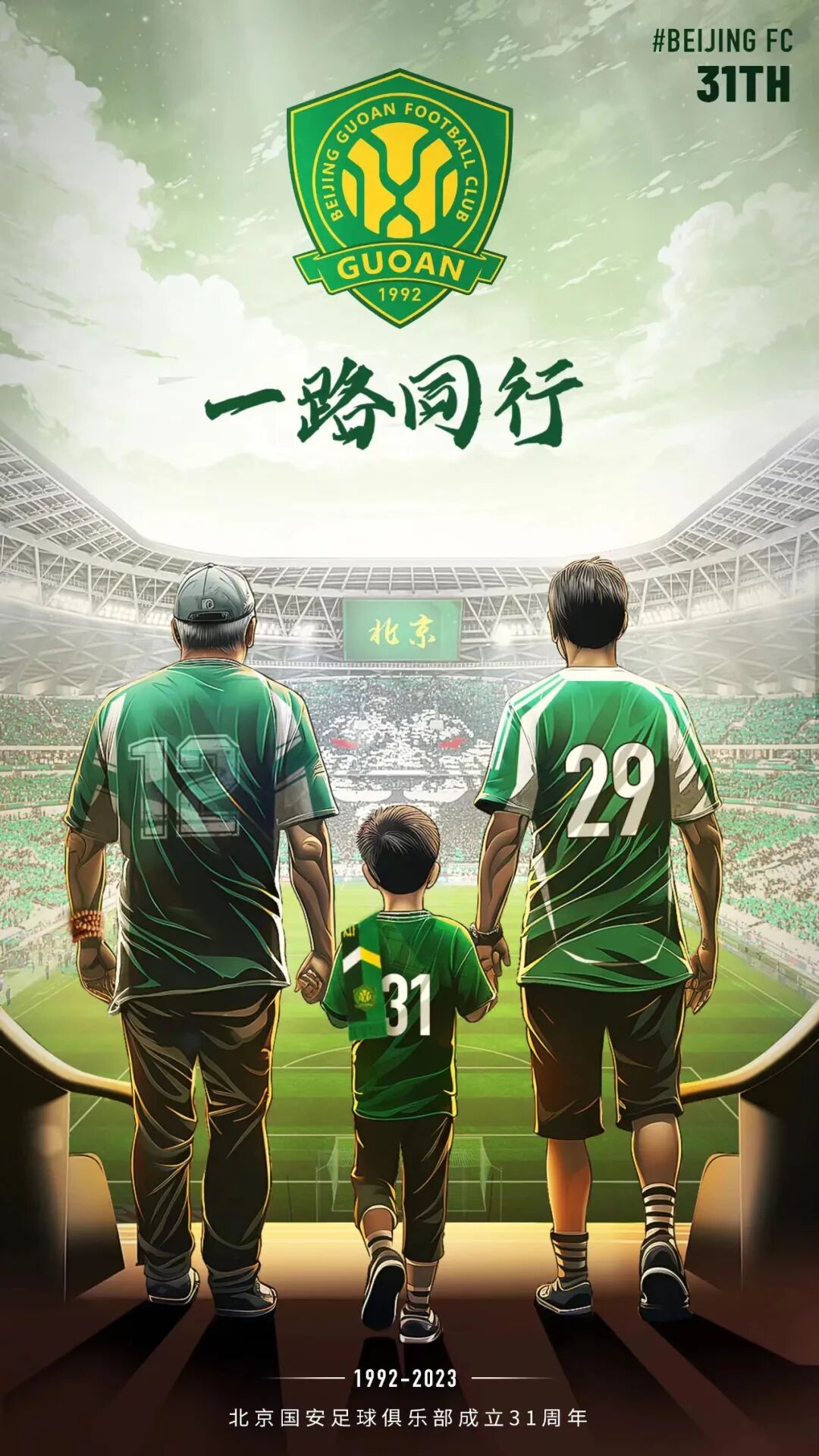 29日上午,国安俱乐部在其官方账号发布了一张海报,庆祝自己的31岁生日。图中祖孙三代人携手前行的画面寓意着国安精神的传承,同时也和一路同行的主题遥相呼应。虽然过往的2023赛季球队成绩对于国安球迷来说不能满意,但工体的重新投入使用还是让大家都有了“回家”的亲切感觉,也对于全新的2024赛季抱有美好的憧憬。