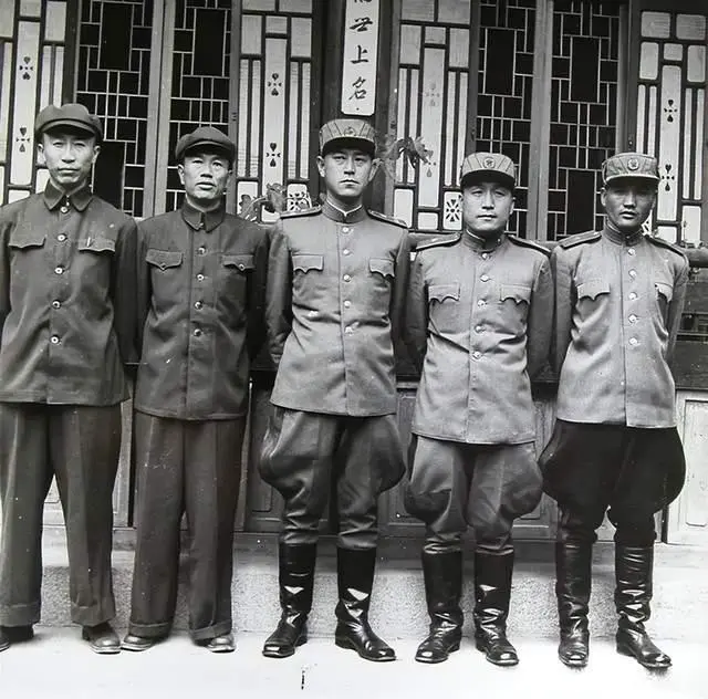 △参加开城谈判的朝中方面代表(左起):中国人民志愿军参谋长解方、副司令员邓华,朝鲜人民军总参谋长南日大将等