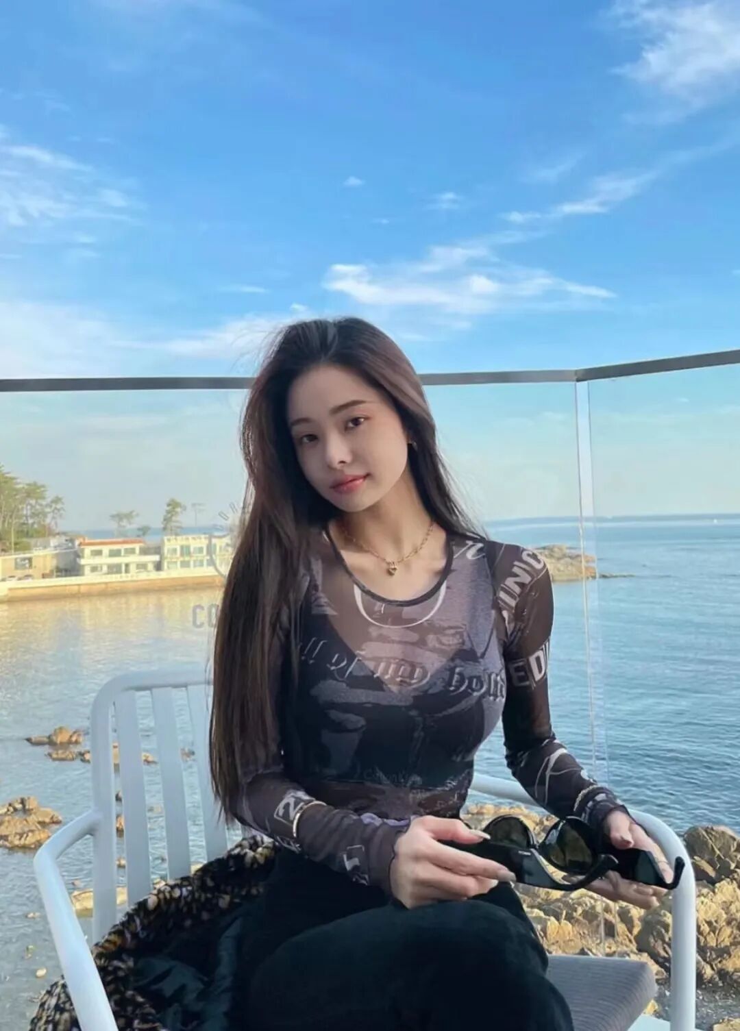 韩国博主宋智雅这一身透视黑色上衣内搭黑色背心,展现美妙身材,透肤装的若隐若现给人一种大方自信的迷人魅力。
