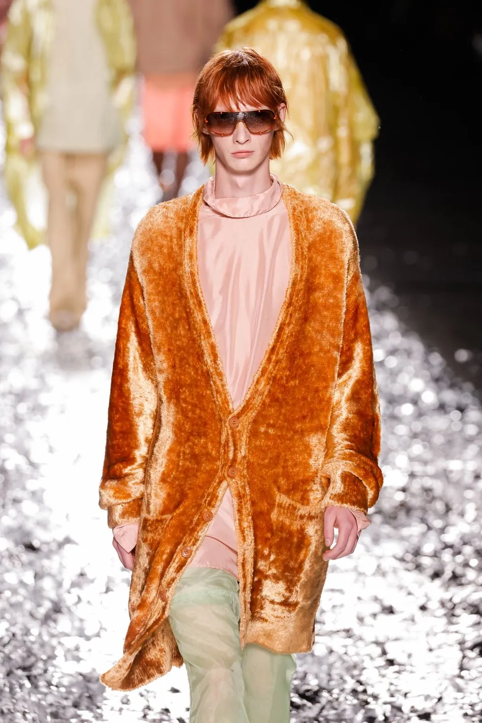 近期炙手可热的演绎新星于适,身着尚未发布的Dior 2025春夏系列黑色套装,是本季巴黎男装周的一大“赢家”。这套与常规西服不同的特殊领口设计让整套look更显修身的同时,也让于适的出色身形得以显现。