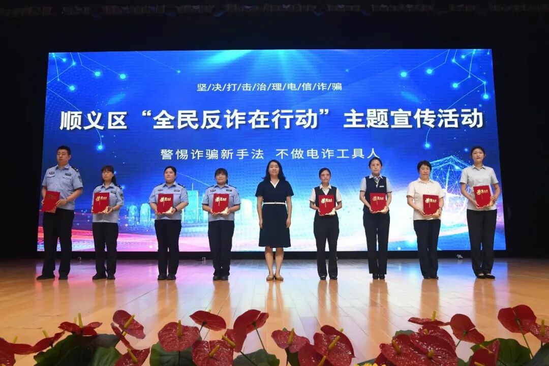 期间,大家观看了2024年上半年顺义区电信诈骗防范治理工作视频片,诠释在区委、区政府的坚强领导下,各单位、各属地始终坚持齐抓共管、群防群治,电信网络诈骗打击治理工作取得了发案数、财损数“双下降”的阶段性成效。随后,与会领导为反诈工作各条战线上涌现出的先进集体8个和先进个人8名进行表彰颁奖,获奖代表依次进行发言,台下观众纷纷为之鼓掌点赞。之后,北京市公安局刑侦总队领导,为我区8名受骗群众返还被骗资金270余万元,失而复得的受骗群众对公安机关迅速破案、高效挽损的工作质效表示衷心感谢。