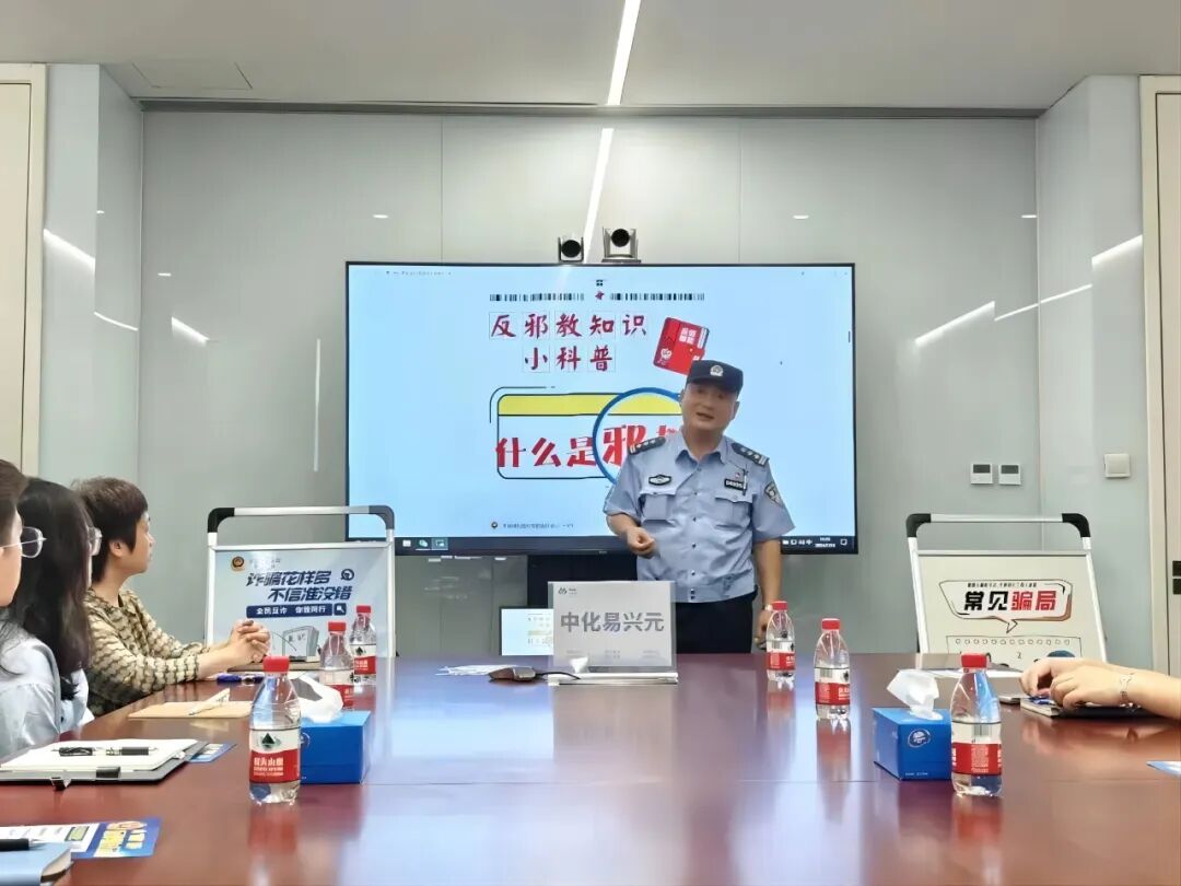 为扎实推进反邪教警示教育工作,推动反邪教宣传走深走实,北京市公安局顺义分局紧紧围绕反邪教宣传工作特点规划组织了多样的宣传推广活动。为进一步提高企业干部职工识别防范邪教的意识和抵御邪教的能力,推动反邪教警示教育宣传工作有条不紊进行,7月16日,顺义公安分局马坡派出所按照分局整体工作部署深入中国中化控股集团成员企业——北京易兴元石化科技有限公司,举办了一场主题为“辨邪、防邪、反邪”的普法宣传教育活动。