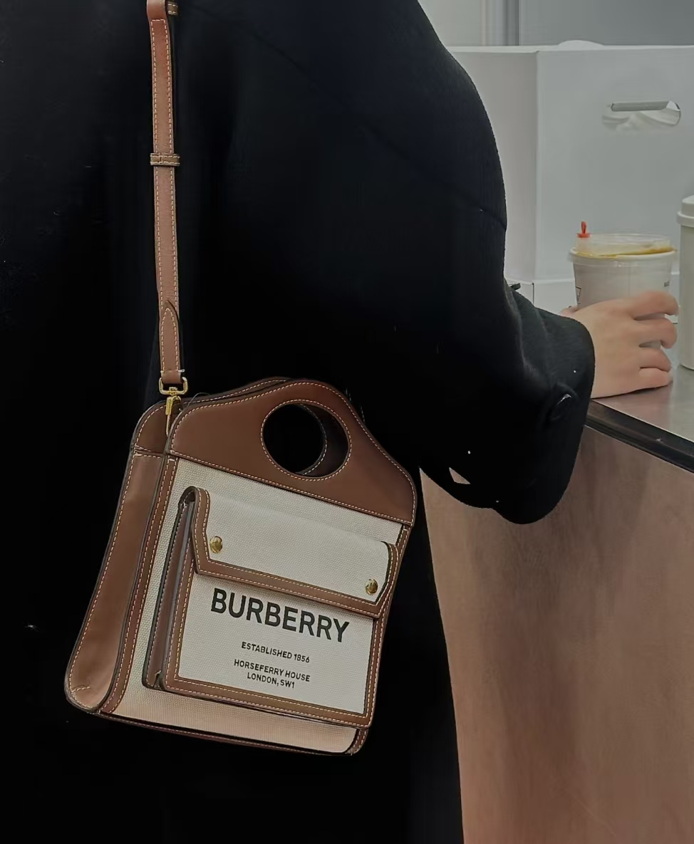 BURBERRY帆布拼皮包,耐磨轻便,拼皮处采用明缝线,邮差包的款式,复古感扑面而来,甜酷学院风的穿搭,满满的burberry英伦风,在帆布系列中,属它的热度高。