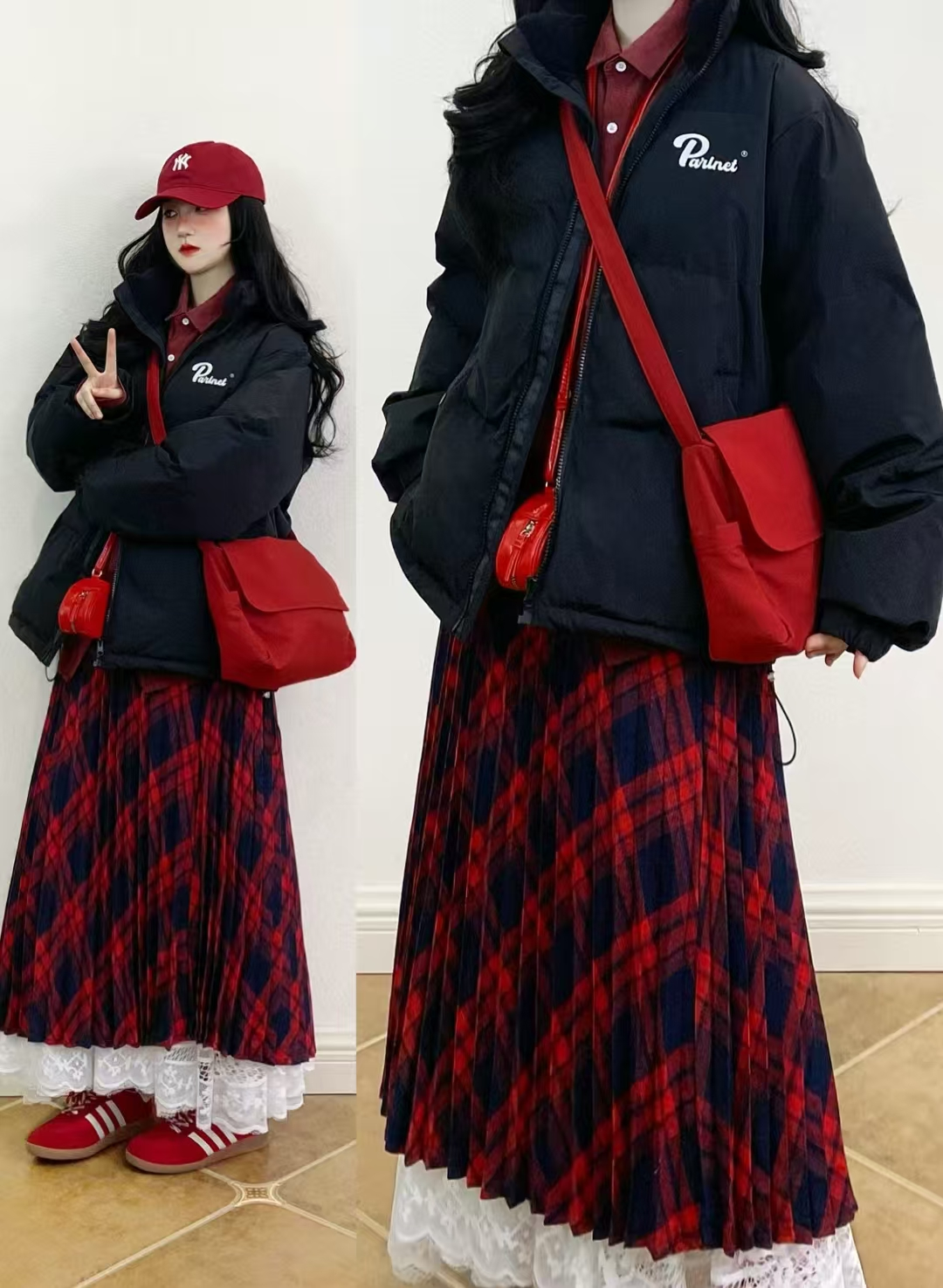 看多了温柔风,来一点“不好惹”风格,玩转各种配色,回家有效减少来自亲戚的问候。全黑色的一套霸气御姐范,大毛领收腰羽绒服搭配黑色垂感拖地裤,上下身的穿搭统一黑色+金属配色,在冬日里既保暖又给人“生人勿近”的气场。繁杂的黄色格子面包服搭配美式破洞牛仔裤,潮人专属穿搭。