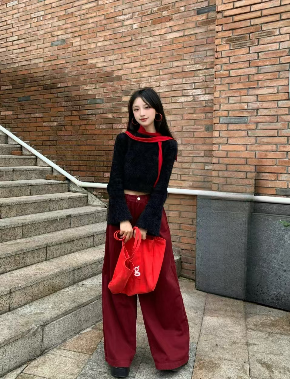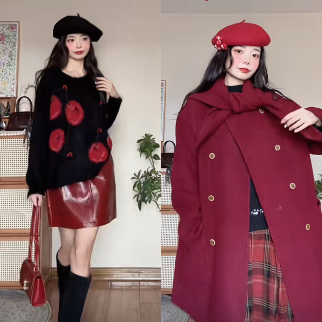 红黑配色的高级感还可以解锁更多搭配,任何单品都可以选择黑红配色,妥妥的新年战袍。