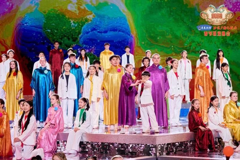 节目中,《蟠虺舞》的登场堪称惊艳。它以商周青铜器上常见的蟠虺纹为灵感源泉,打破常规,将古老文化元素与现代舞蹈艺术进行大胆融合,从舞蹈编排到舞台呈现,处处彰显着匠心独运。与全国春晚舞台的同类节目相比,它在文化挖掘深度、艺术创新程度上都更胜一筹,把中华文化的深厚底蕴与独特魅力展现得淋漓尽致,为观众带来前所未有的视觉盛宴。首都舞台历来注重海纳百川、兼容并蓄的艺术呈现,这一理念在今年北京台春晚的节目编排上得到进一步彰显。代斯、兰天奇、乌兰图雅、王一凤、刘亦仙、阿一豁、新牧人组合,通过多民族音乐元素的交织与舞姿变幻,形成一幅民族团结的壮丽图景,也让观众真切感受到首都北京在践行首善标准、铸牢中华民族共同体意识方面所取得的显著成效。本届春晚同样延续了包容与开放的艺术格局。美国One Voice儿童合唱团与中国天使童声合唱团共同演绎改编歌曲《地球是个“童”心圆》,以纯真的童声诠释美美与共的精神内涵。通过导演组精心策划的“京城体验之旅”,中美两国的孩子们,乘坐仿古“铛铛车”畅行于中轴线沿线,一路游览了正阳门、天安门广场、中山公园、故宫、景山、北海等景点,品尝了北京烤鸭、艾窝窝、驴打滚、豌豆黄、小豆凉糕等北京美食,用童真视角近距离感受着北京别样的城市魅力。