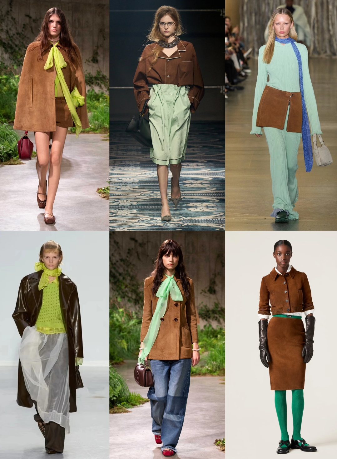 “棕色+彩色”的穿搭风格便被称为可露丽风,干练的棕色外套下,浅春色内搭透露出鲜活童趣,通过色彩与质感的碰撞,传递出既成熟又不失童真的风格态度。这期穿搭直接给公式,虽然棕色是生活的沉稳底色,但是偷偷加点浅春色系的甜又何妨~