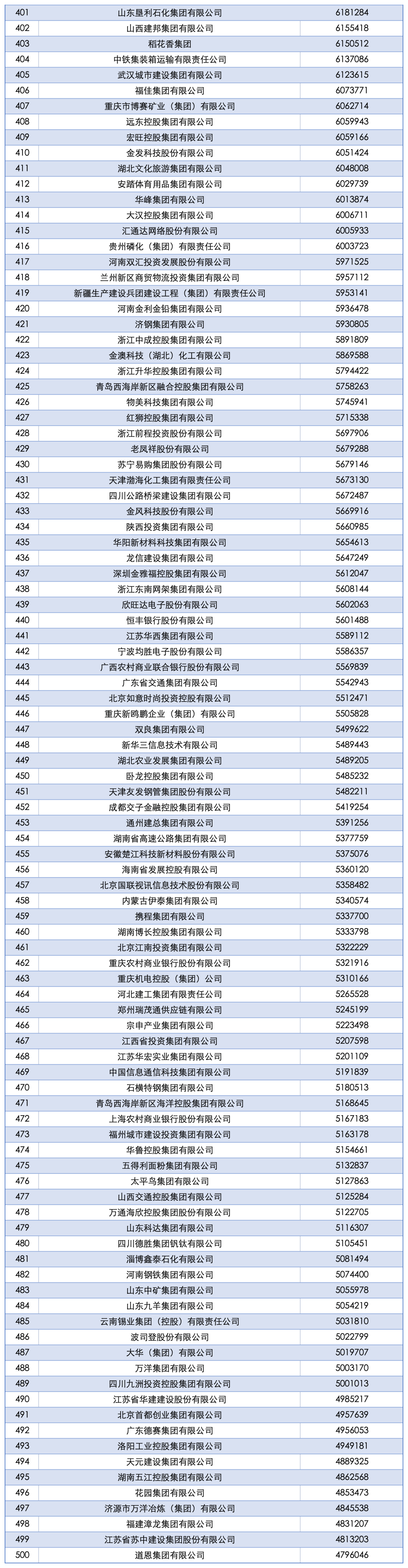 “2025中国企业500强” 榜单: