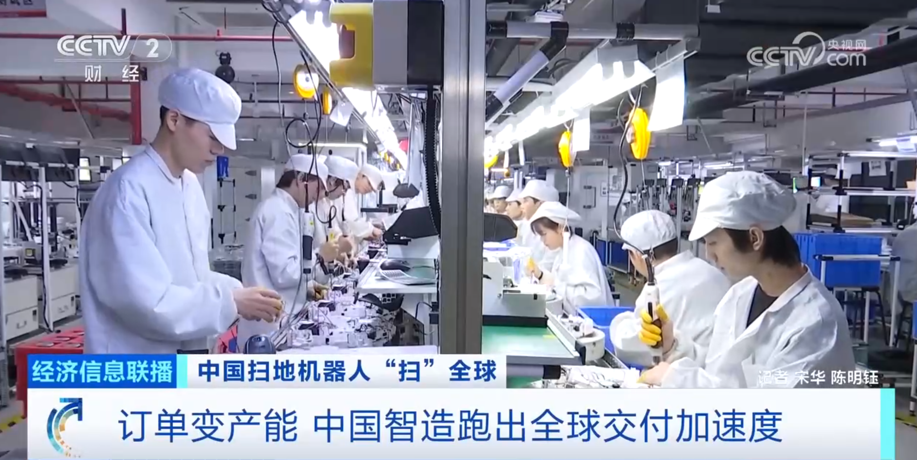 而在广东东莞另一家扫地机器人制造工厂,随着海外订单持续增加,他们通过产线智能化升级来提升生产产能。目前工厂正开足马力,抓紧生产。