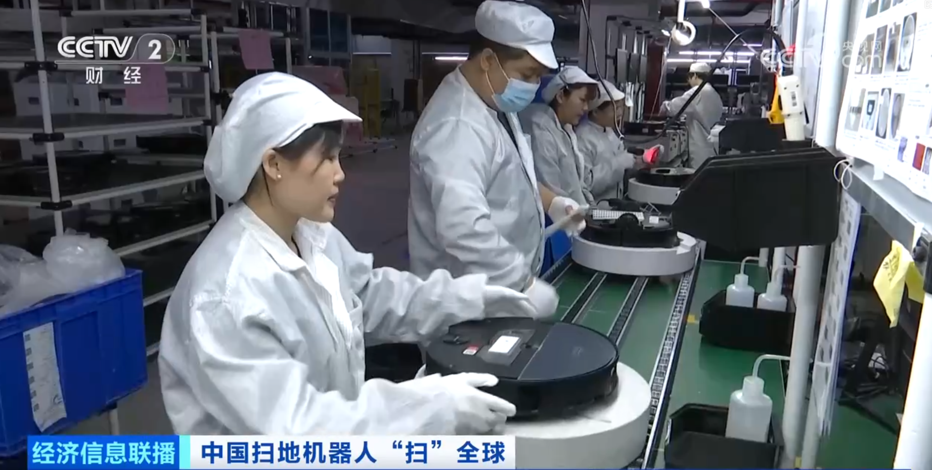 在广东惠州的一家扫地机器人制造工厂,生产线正满负荷运转。自动化贴片生产线精准作业,组装生产线工人们与机器协同合作,再经过超百项测试,一台台扫地机器人才能装箱启程,发往海外市场。