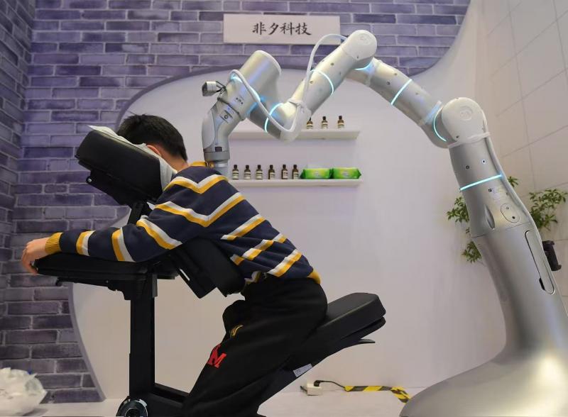 大会还设置了三大沉浸式互动体验区,以可感、可触的形式,全景展现人工智能重塑社会生产与生活的生动图景:机器人摄影师为观众定格“最帅瞬间”;咖啡师机器人依据体验者提供的照片,制作专属拉花拿铁;按摩机器人熟练运用中医手法,提供精准肩颈护理……多款功能各异的机器人共同勾勒出丰富多元的未来生活场景,正一步步走进日常。