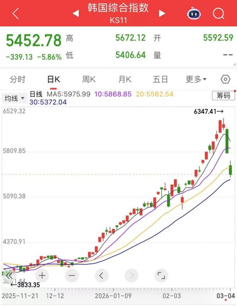 亚太股市3月4日开盘全线走弱,日韩市场延续前一交易日跌势,韩国股市盘中大幅下探并触发熔断机制,引发全球市场对地缘风险与资金流向的高度关注。