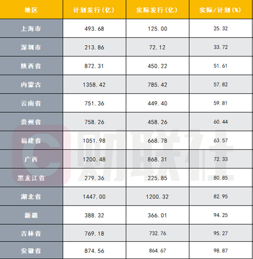 不过弱资质重点省份地区发行节奏普遍放缓,如内蒙古、云南、贵州等地,一季度地方债仅完成计划发行的57.82%、59.81%、60.44%。