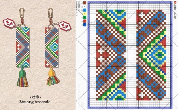 林木木设计的红绿蓝撞色壮锦拼豆效果图与图纸,作品已申请版权。受访者供图