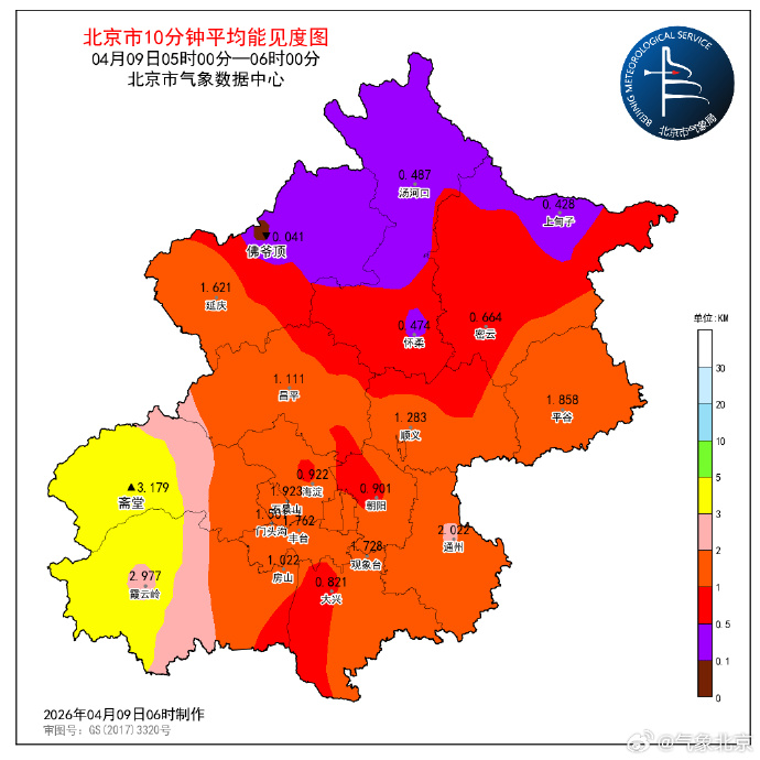 北京4月9日上午有小雨并有轻雾或雾,最高气温14℃