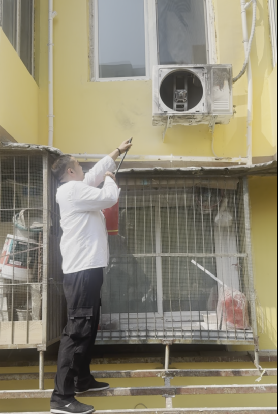 而胡黎明熟练的翻墙爬楼技能,则是平时每月清洗油烟机、检查烟道练出来的。“每次清洗完我都要爬上顶楼检查设备,有时用梯子爬上来,当天着急灭火,也没想着找梯子就直接爬了。”