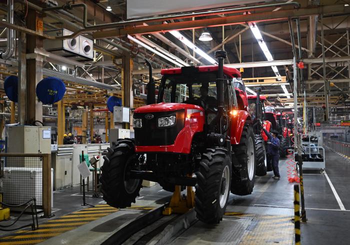近年来,洛阳坚持以文塑旅、以旅彰文,推进传统文化创造性转化和创新性发展。洛阳正在从传统的资源展示转向创新型场景消费,用新媒体交互式传播吸引游客,书写现代的浪漫与诗意。千年洛阳,风华正茂。2025年11月4日,工人在位于河南洛阳的国机集团中国一拖大轮拖总装线作业。新华社记者 李嘉南 摄