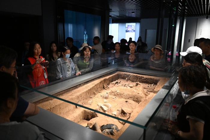 2025年4月16日,游客在位于河南省洛阳市偃师区的二里头夏都遗址博物馆参观。新华社记者 李嘉南 摄