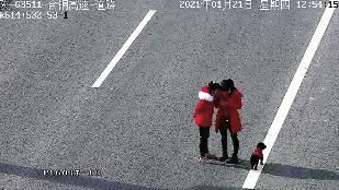 1月22日,渭南市公安局交警支队高交大队合铜中队民警王鑫介绍,1月21日中午12时许,中队接到监控中心报警,在视频巡逻过程中发现合铜高速上,有一名身穿红色外衣的女子带着一名小孩在遛狗。