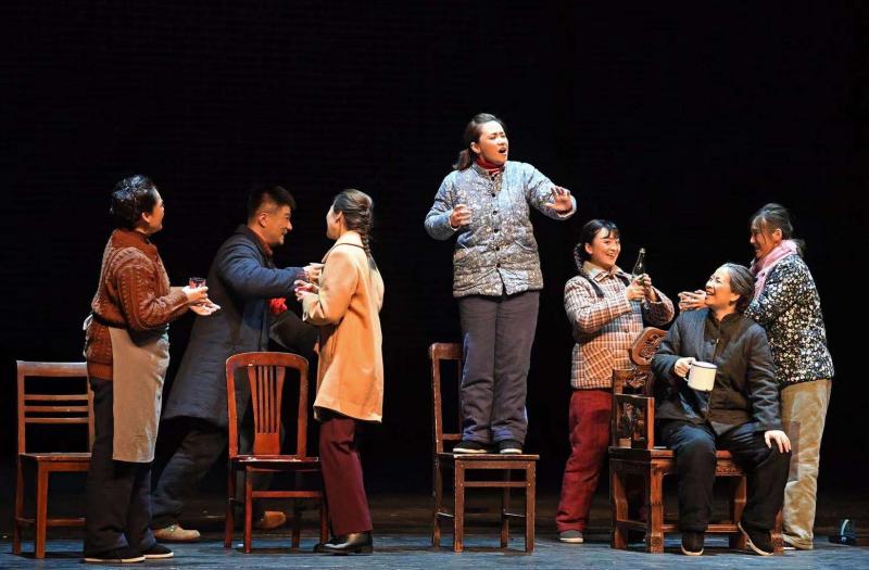 此外,全剧还使用了“快闪”与“平行舞台”的方式来展现群戏。左边七凤家正在争执,而右边五凤家已经吵起来了,衔接巧妙又加快了节奏。导演庄嘉敏称,“我们选择了保留尽可能多特别带有戏剧冲突和冲突特别浓烈的片段,但又不能丢弃了那种琐碎生活的质感,所以用了当今舞台上比较常用的一种平行手法,一个空间里发生好几个故事,这样既保证了信息量,同时也从观演角度给观众一种比较新的视觉体验”。