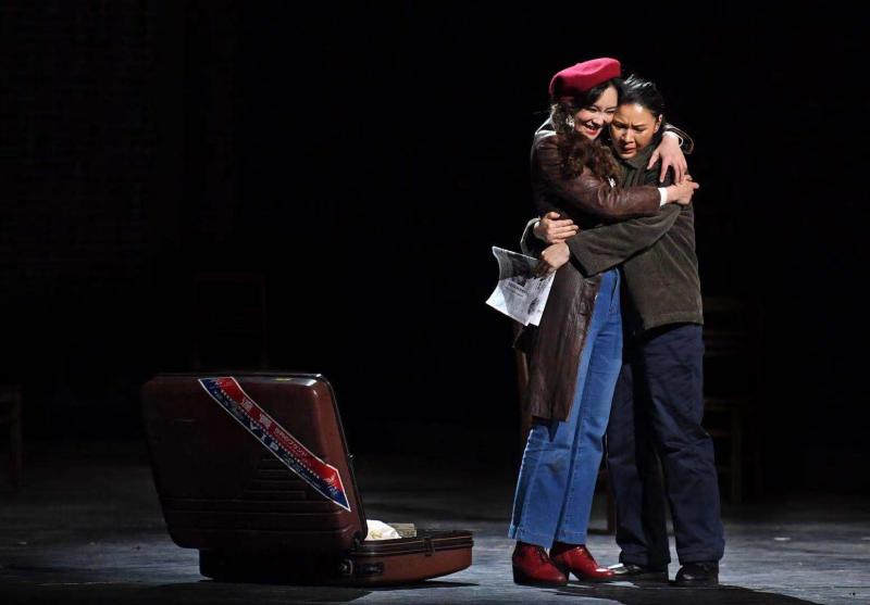 整个舞台相当简洁,“听雨楼”非常写意抽象地呈现在舞台上,舞美设计盛小鹰表示,“观众来看这些人物,更关注的是人物本身和细节,而不是太花哨的舞美,因此我们用简约的设计、写意的手法,凸显出人物本身。”