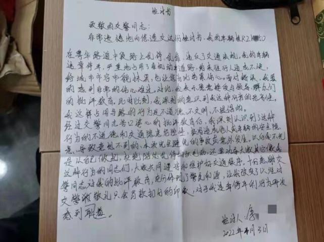 近日,有珠海市民发布视频,举报粤华路违停小车挡住轮椅老人去路。拱北交警迅速介入,多次督促司机余某到大队接受调查,同时对他进行交通安全法律法规的宣传教育。余某认识到自己的错误,不但写下检讨书,还拍视频亲向老人道歉。