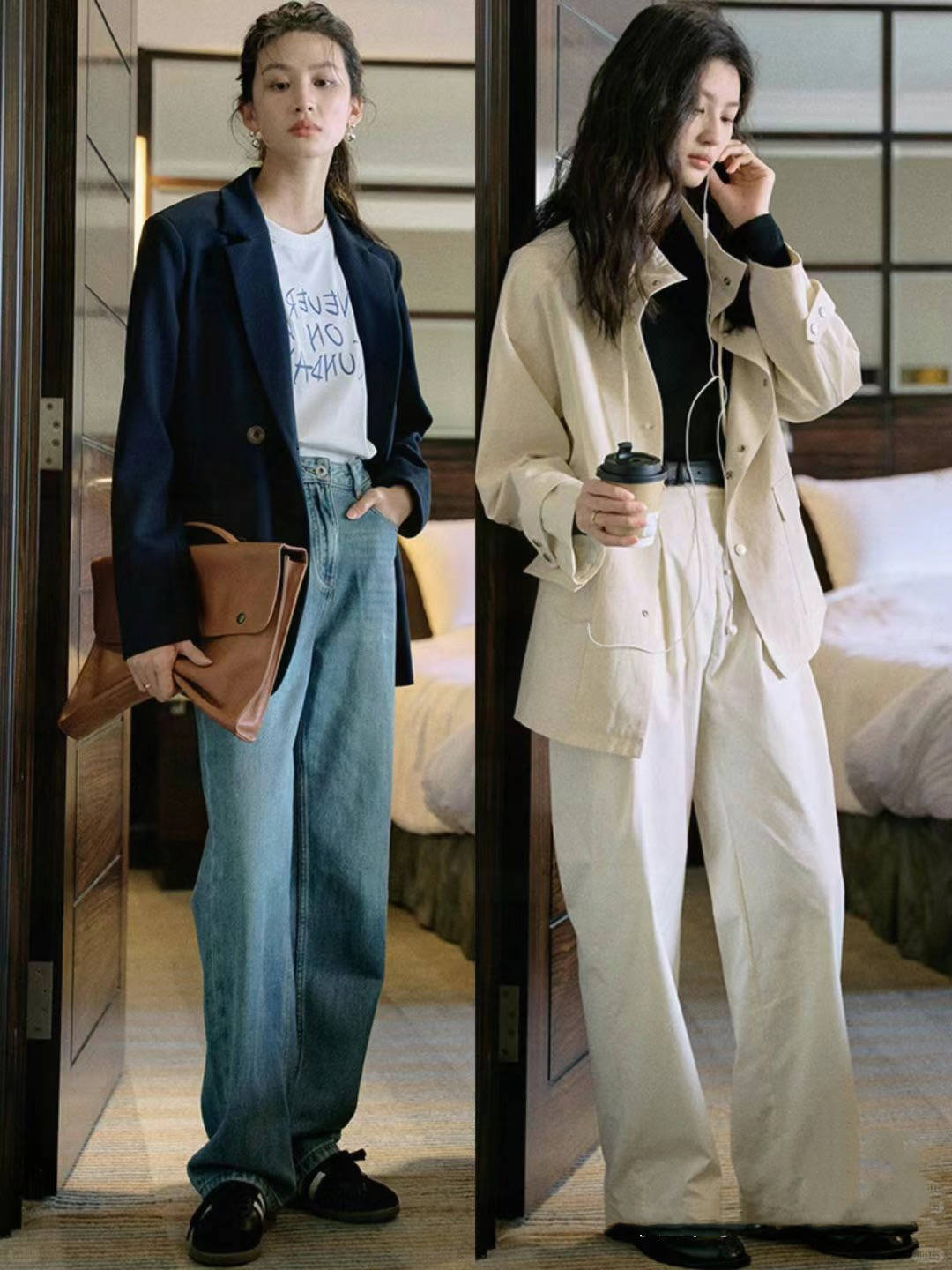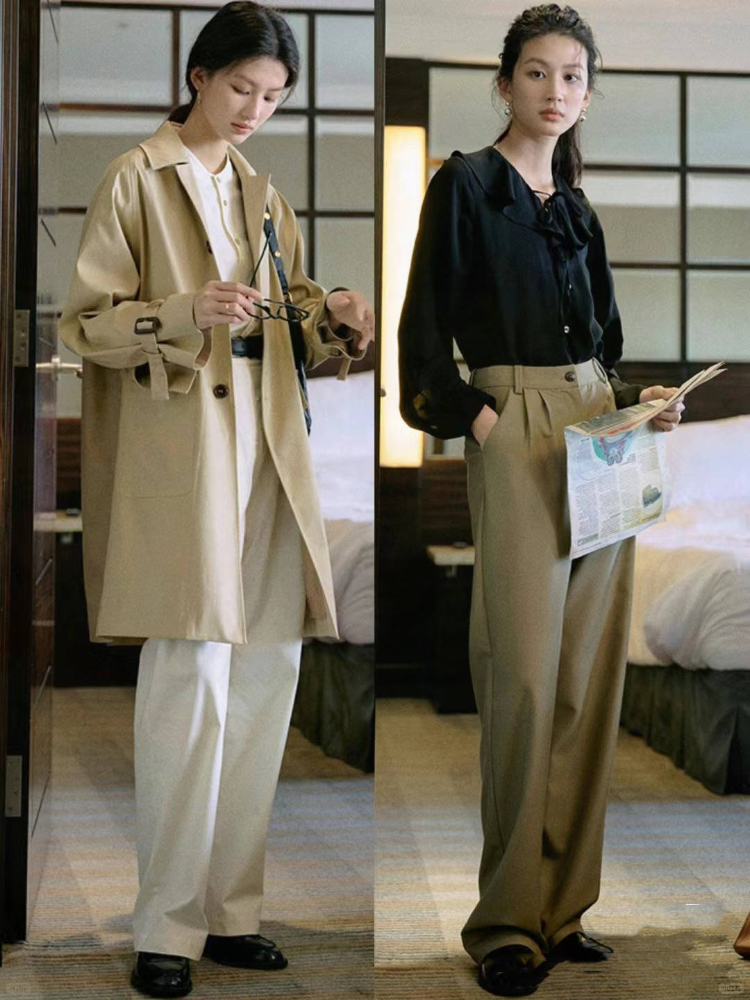看似平平无奇的穿搭,总是能在平静的日子里点缀美好。基础款的衬衫、高腰的西装裤、厚底的小皮鞋、百搭又清冷的风衣,在她们身上更具格调美。